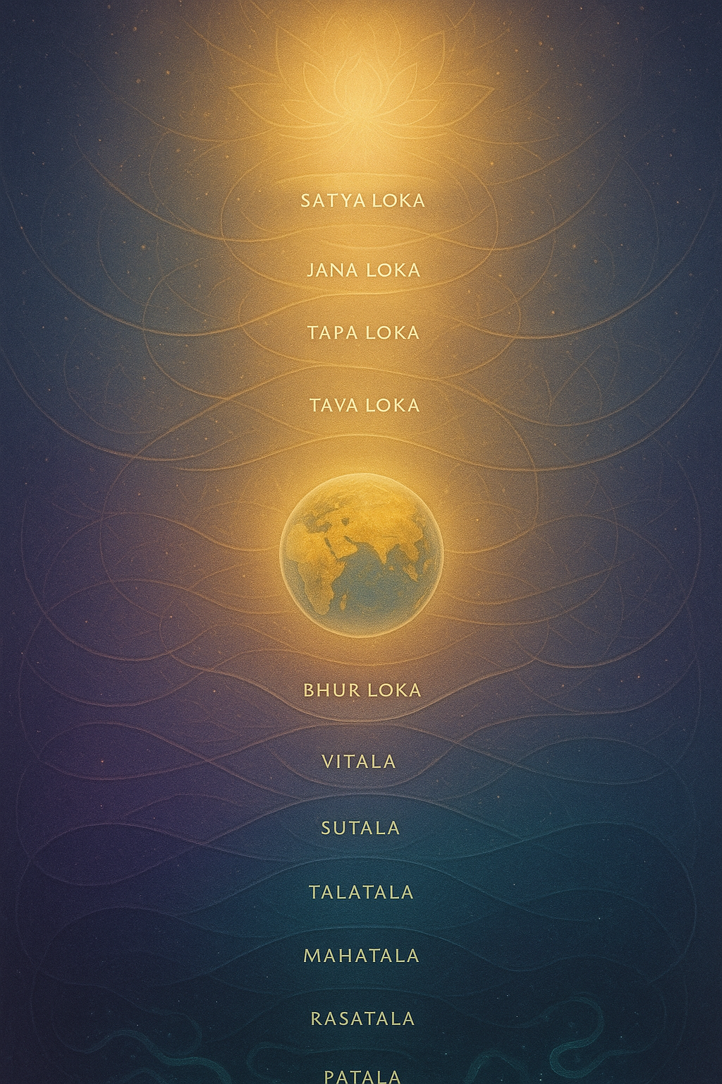 From the beautiful abyss of Patala to the truth-realm of Satya Loka, from Earth’s precious opportunity for karmic action to the eternal transcendence of Vaikuntha and Goloka, the lokas chart consciousness itself—its possibilities, its pitfalls, and ultimately, its potential for infinite evolution beyond all material limitations.